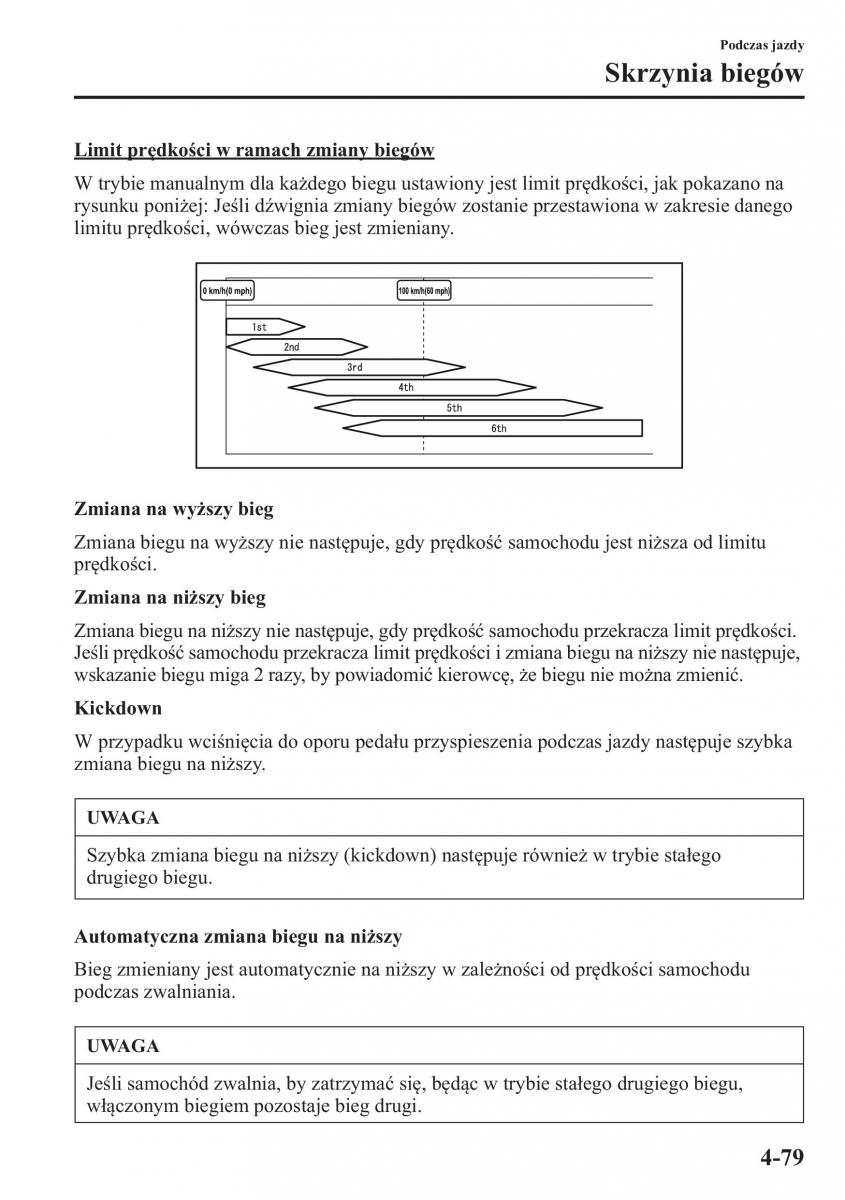 W trybie manualnym dla kadego biegu ustawiony jest limit prdkoci, jak pokazano na