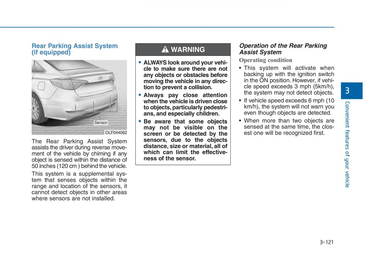 Rear Parking Assist System WARNING Operation of the Rear Parking