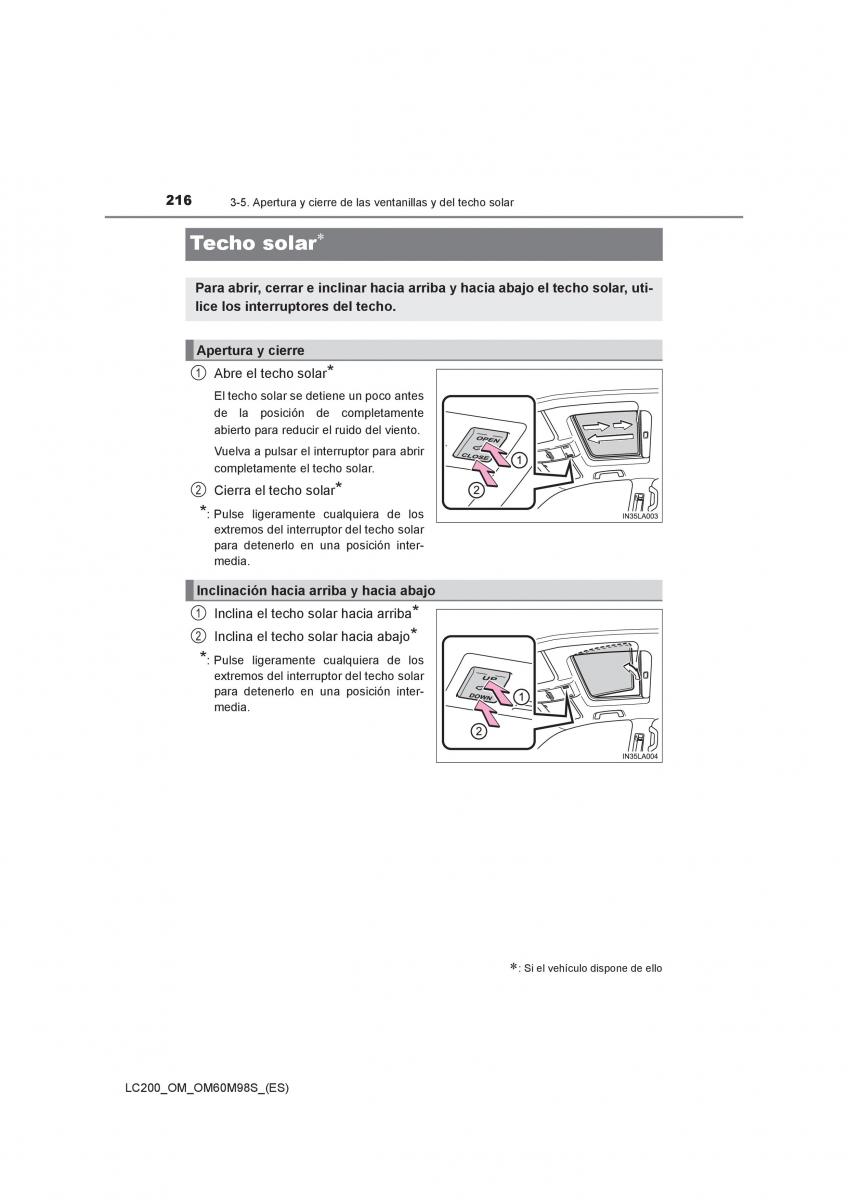 216 3-5. Apertura y cierre de las ventanillas y del techo solar