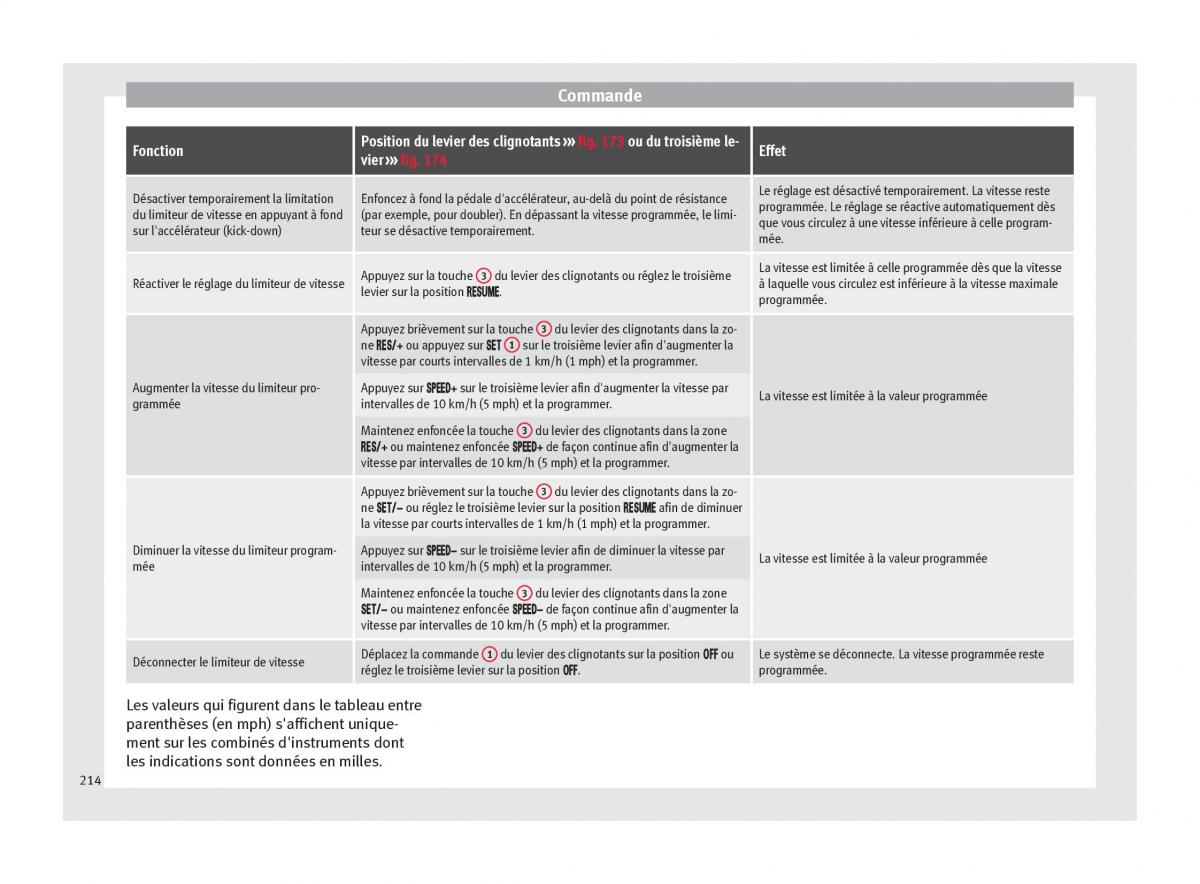 du limiteur de vitesse en appuyant à fond(par exemple, pour doubler). En dépassant la vitesse programmée, le limi-