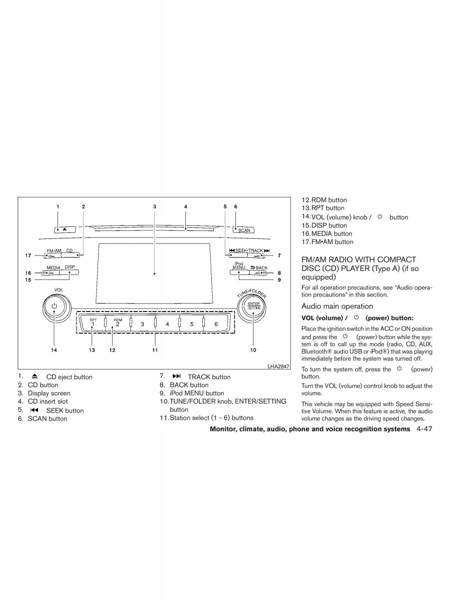 6. SCANbutton 11.Station select (1 - 6) buttonsvolume changes as the driving speed changes.