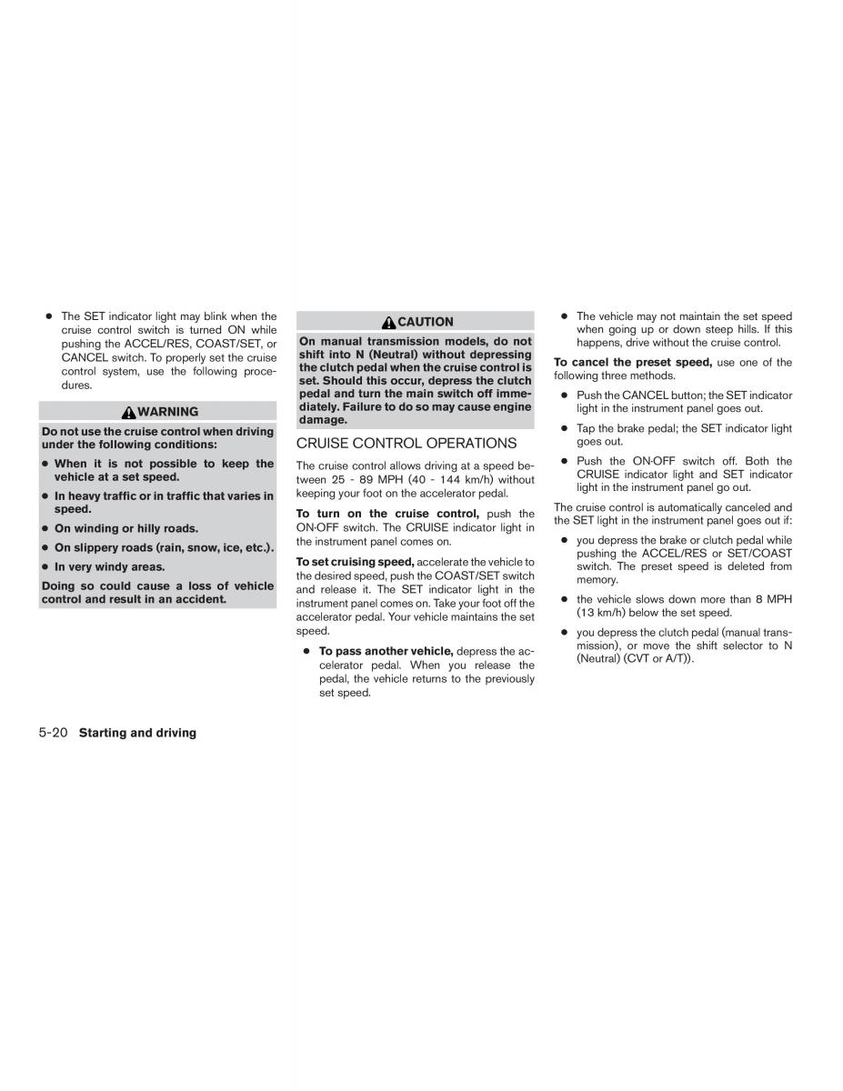 vehicle at a set speed. tween 25 - 89 MPH (40 - 144 km/h) withoutCRUISE indicator light and SET indicator