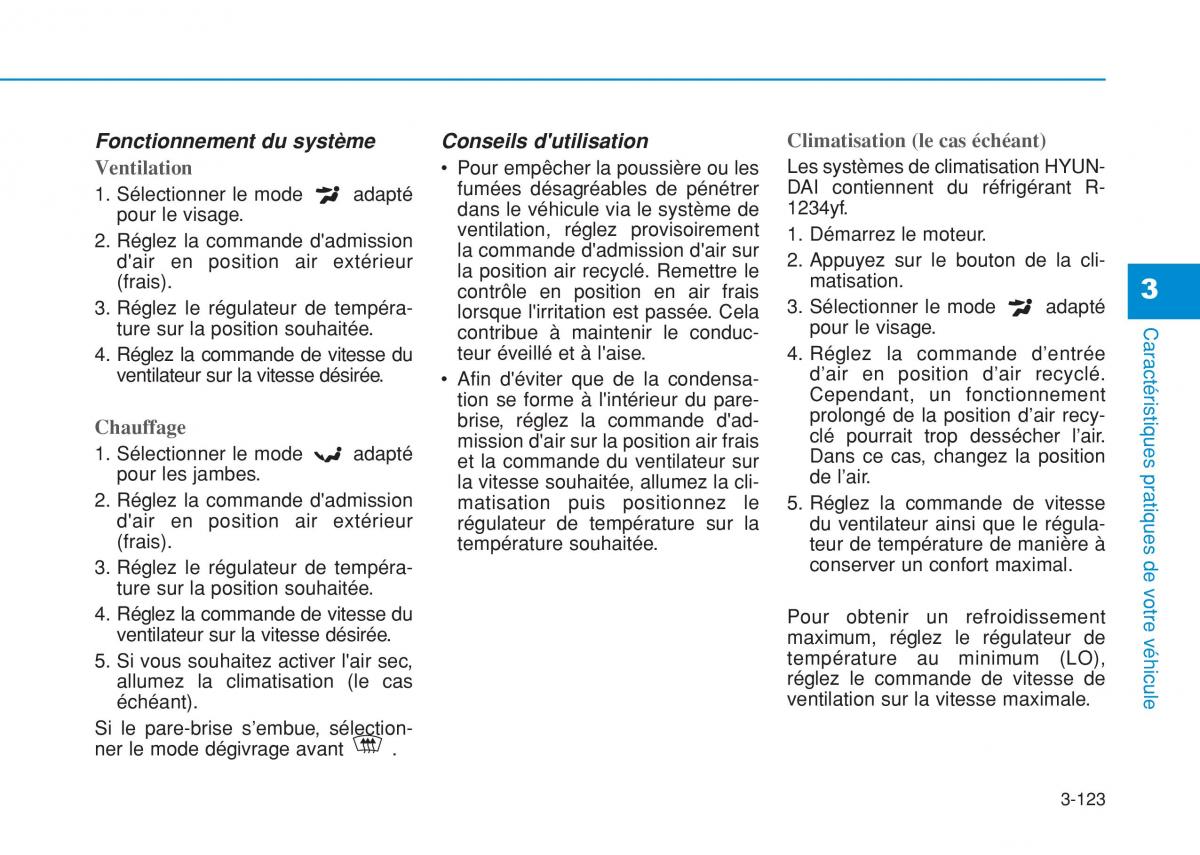 ture sur la position souhaitée. pour le visage. Caractéristiques pratiques de votre véhicule