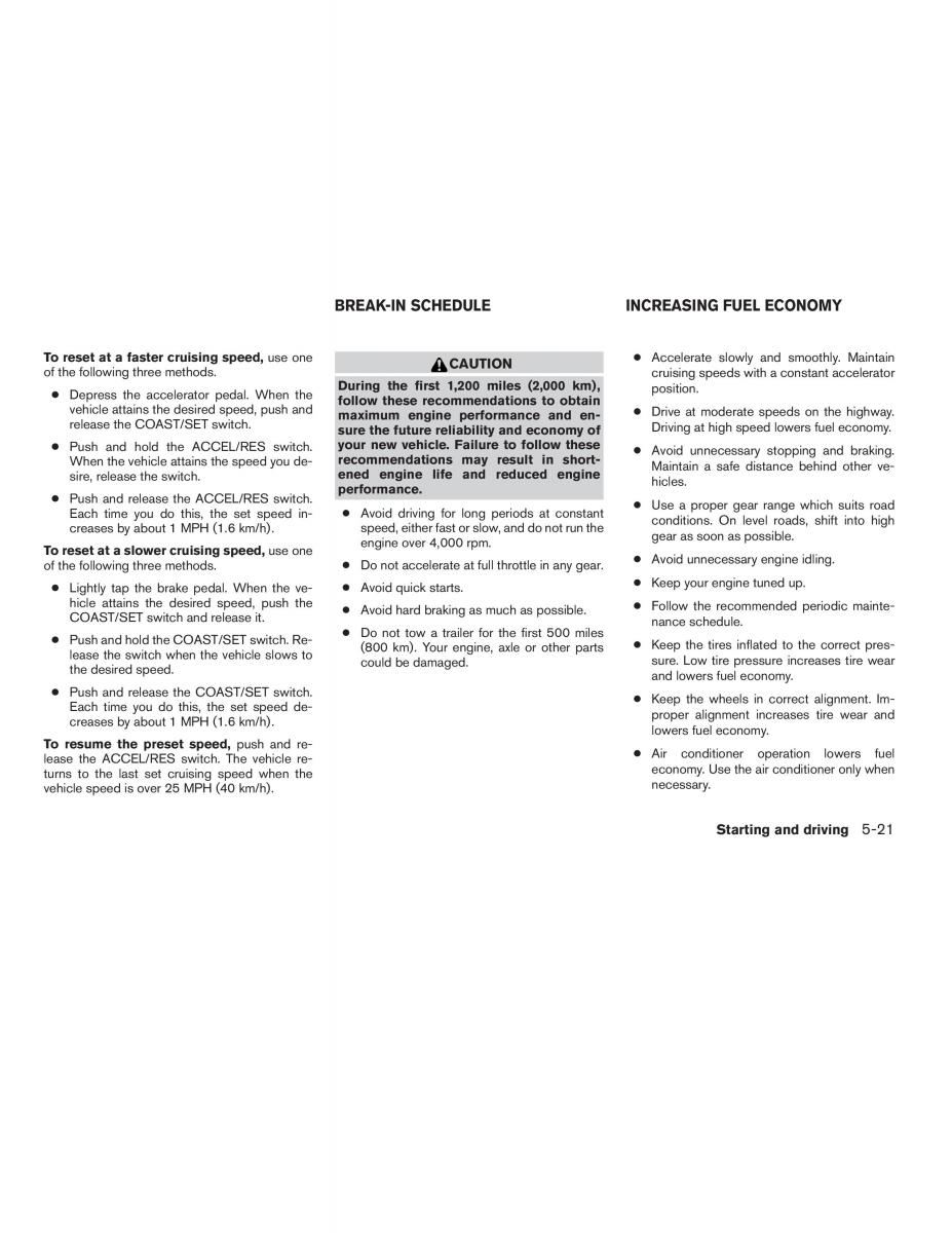 To reset at a faster cruising speed, use oneCAUTION ● Accelerate slowly and smoothly. Maintain