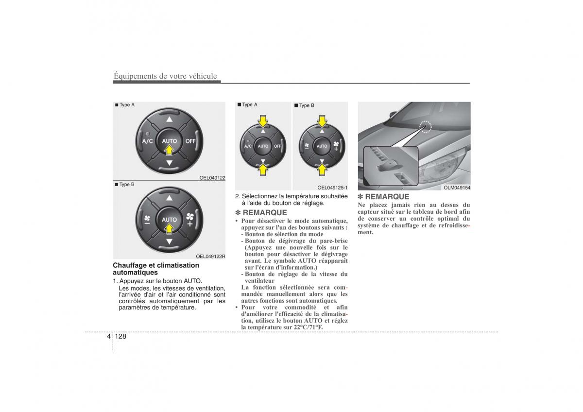 Chauffage et climatisation avant. Le symbole AUTO réapparaît