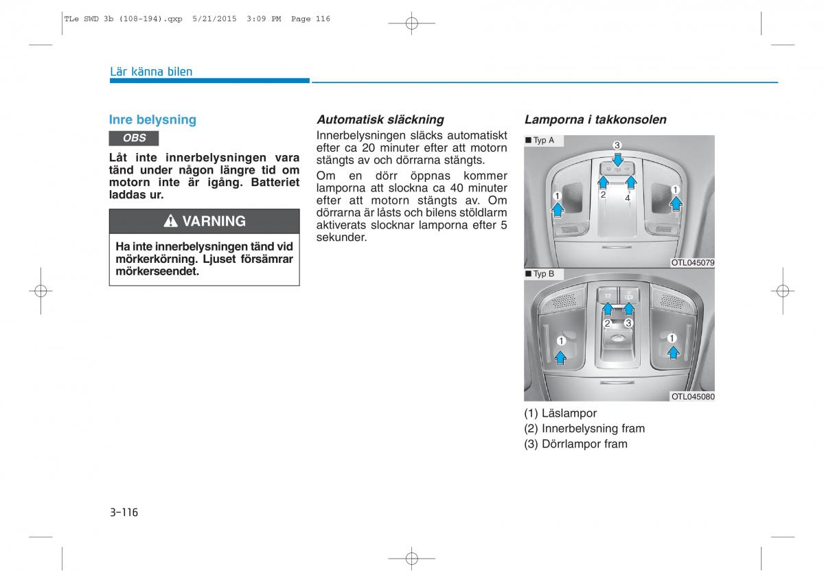 OBS Innerbelysningen släcks automatiskt