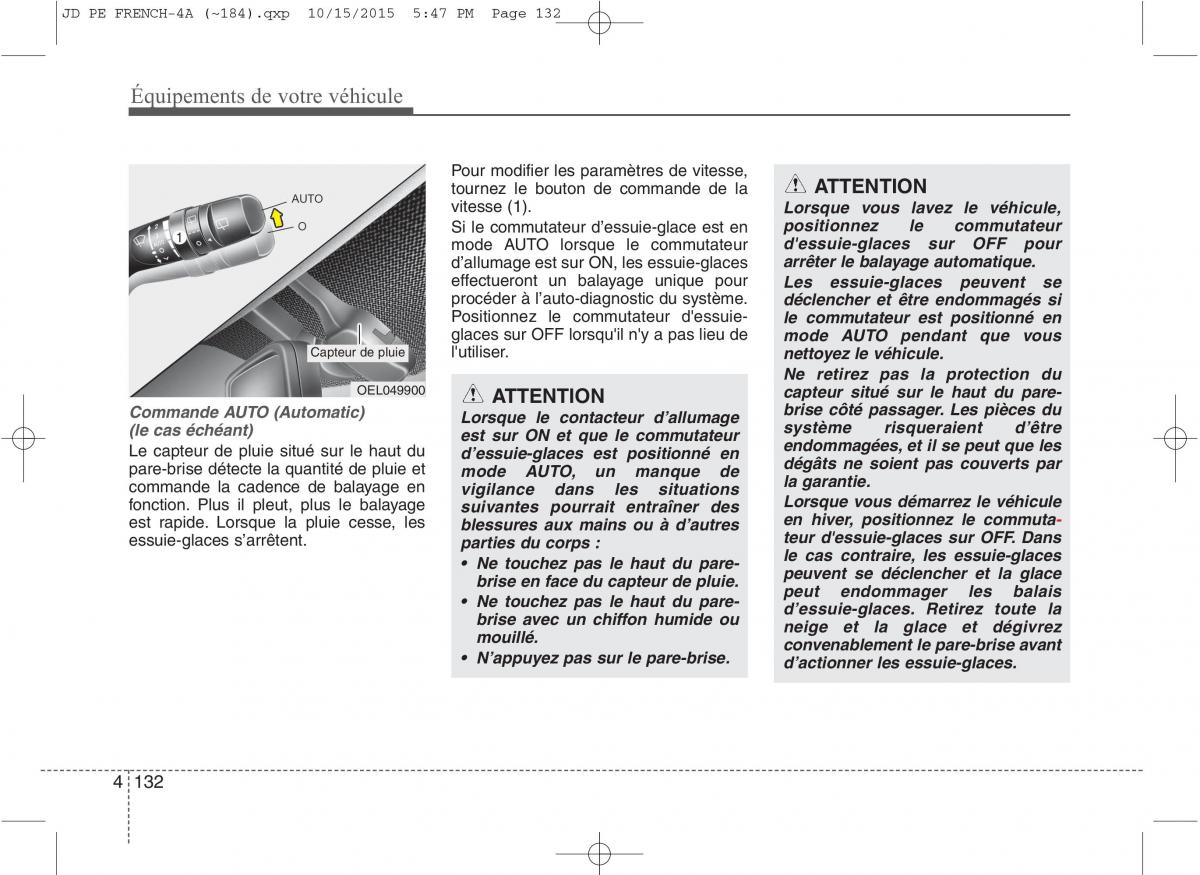 fonction. Plus il pleut, plus le balayage Lorsque vous démarrez le véhicule
