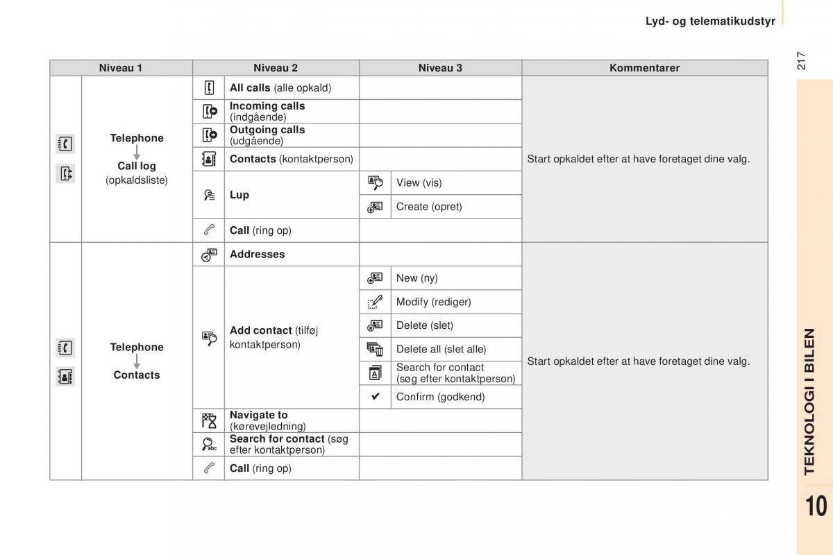 Call log Contacts (kontaktperson) Start opkaldet efter at have foretaget dine valg.