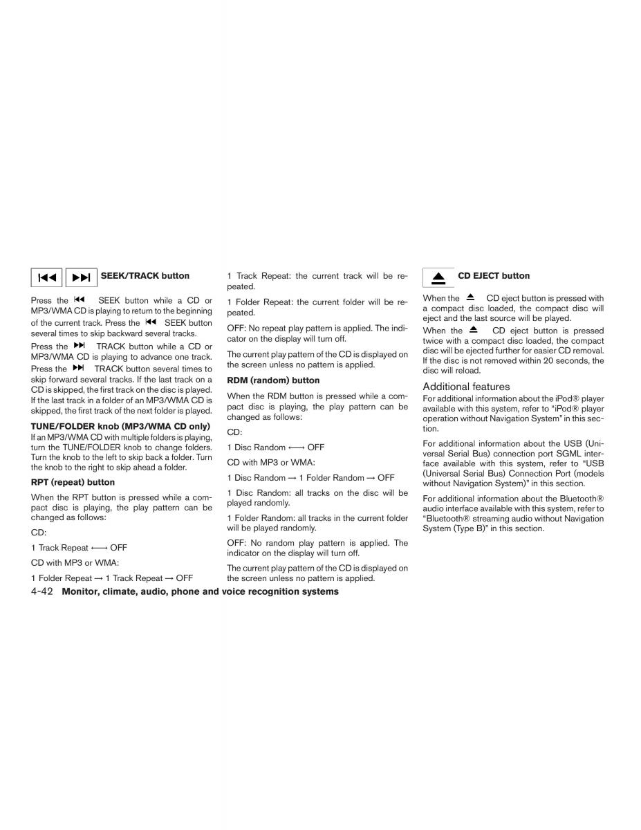 When the RPT button is pressed while a com-1 Disc Random: all tracks on the disc will beFor additional information about the Bluetooth®