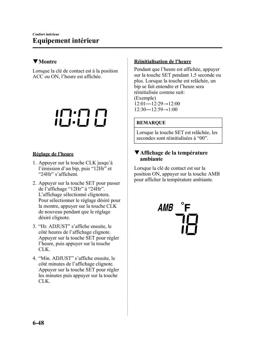 l’émission d’un bip, puis “12Hr” etLorsque la clé de contact est sur la