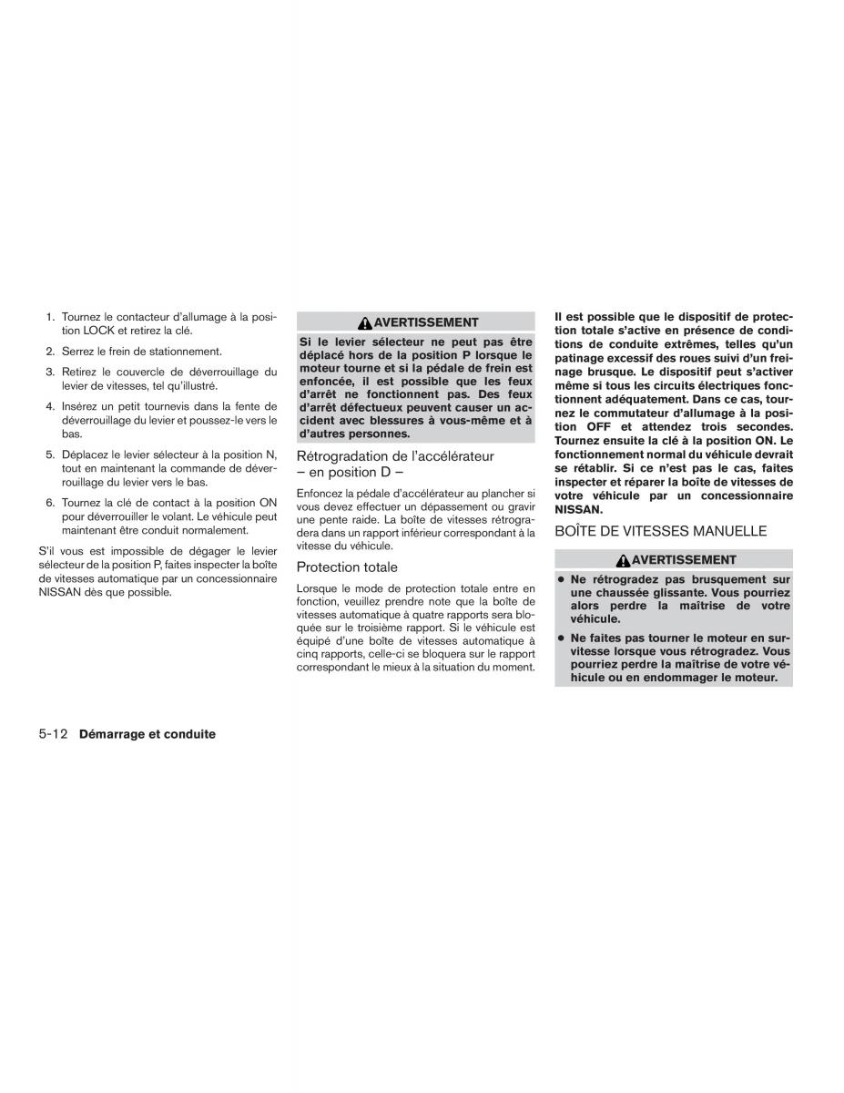 pourdéverrouiller le volant. Le véhicule peutvous devez effectuer un dépassement ou gravirNISSAN.