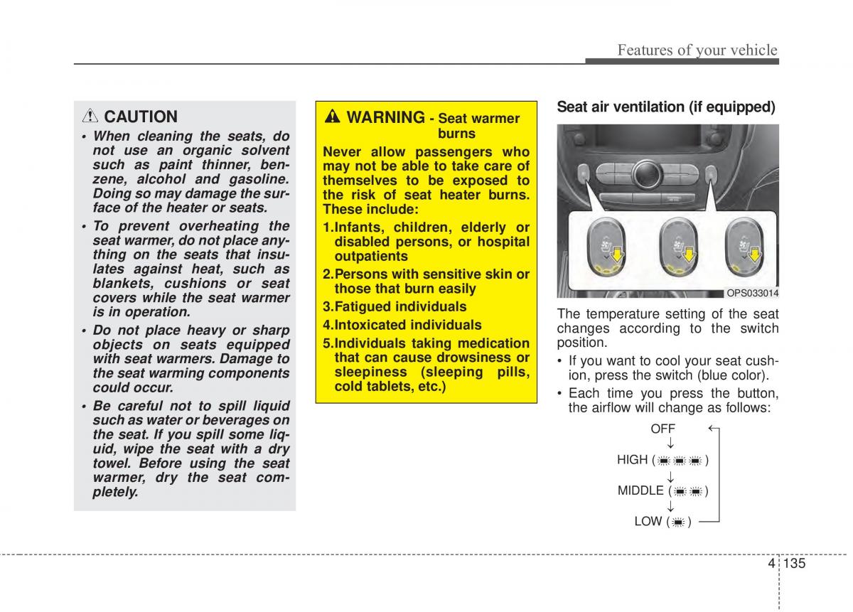 CAUTION WARNING- Seat warmer Seat air ventilation (if equipped)