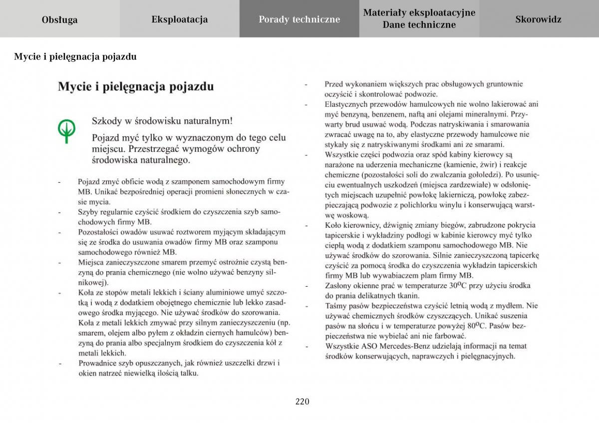 owners manual Mercedes Vario - year of production: 1996, 1997, 1998, 1999, 2000, 2001, 2002, 2003, 2004, 2005, 2006, 2007, 2008, 2009, 2010, 2011, 2012, 2013 - Mercedes Benz Vario instrukcja obslugi PL