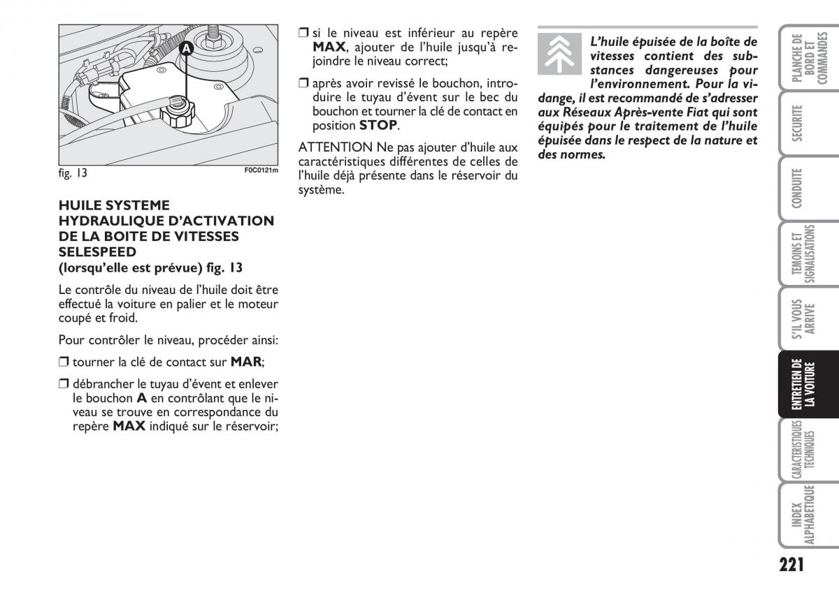 le bouchon A en contrôlant que le ni- ENTRETIEN DELA VOITURE
