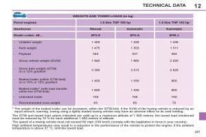 The GTW and towed load values indicated are valid up to a maximum altitude of 1 000 metres; the towed load mentioned