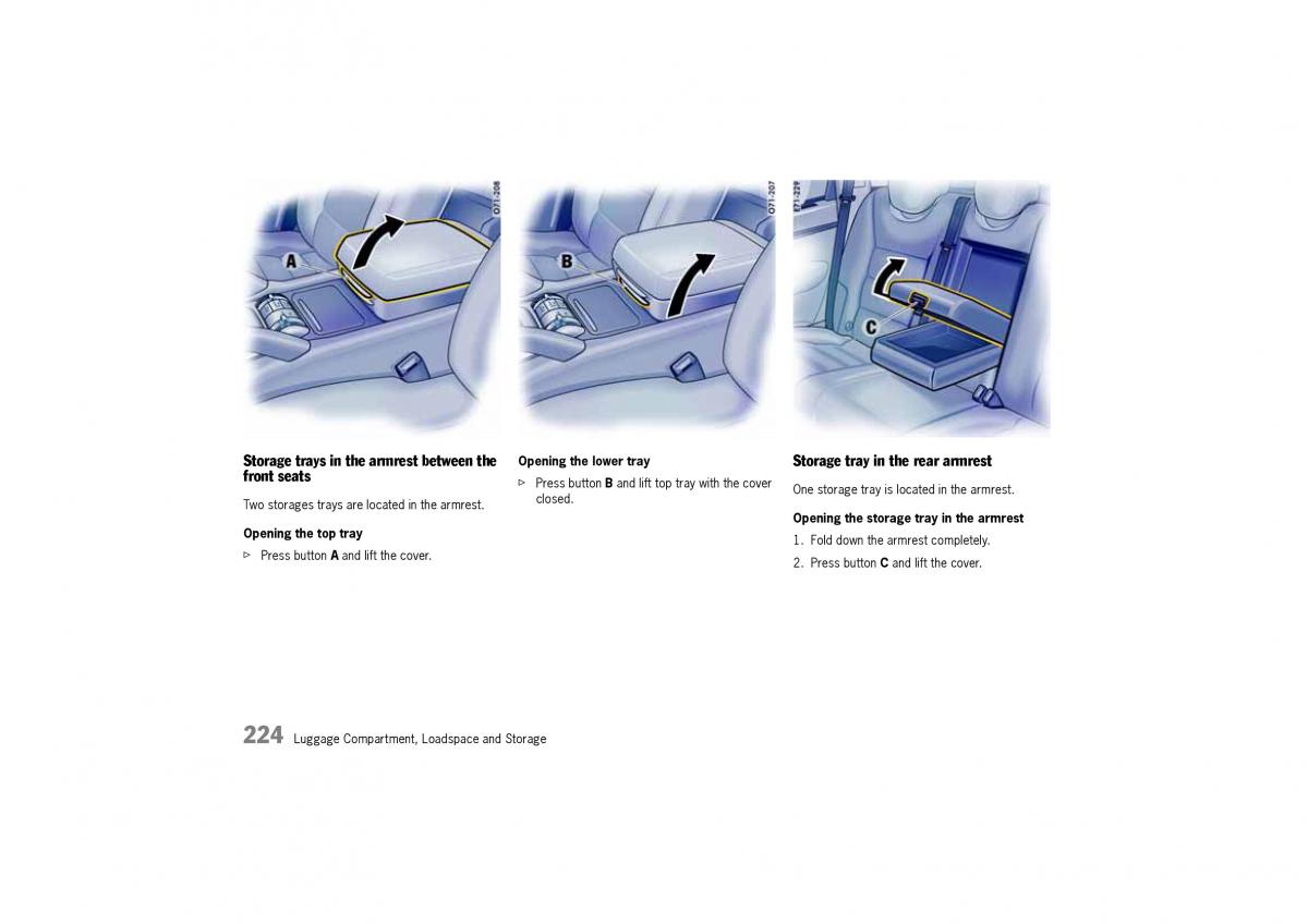 Storage trays in the armrest between the Opening the lower trayStorage tray in the rear armrest