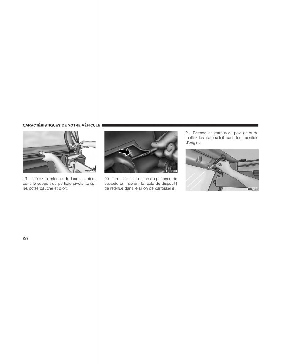 19. Insérez la retenue de lunette arrière20. Terminez l’installation du panneau de