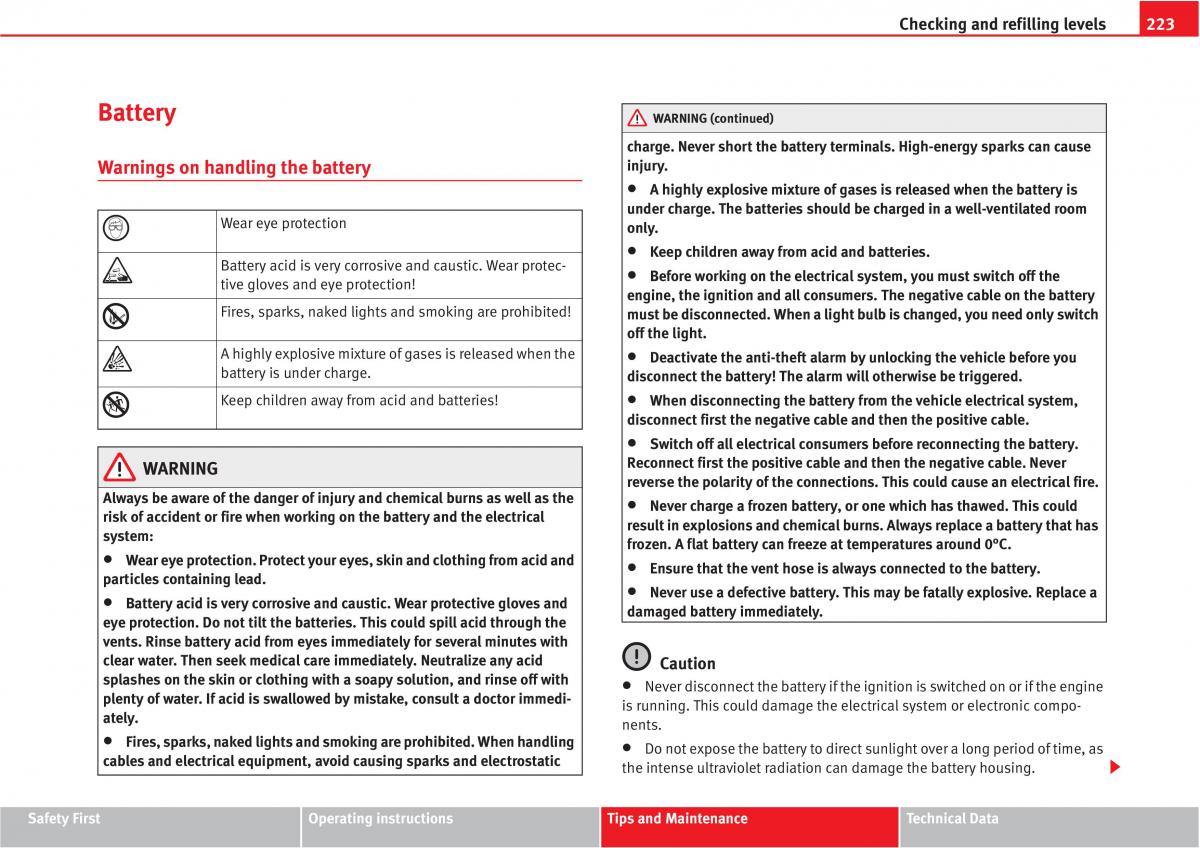 Keep children away from acid and batteries! • When disconnecting the battery from the vehicle electrical system,