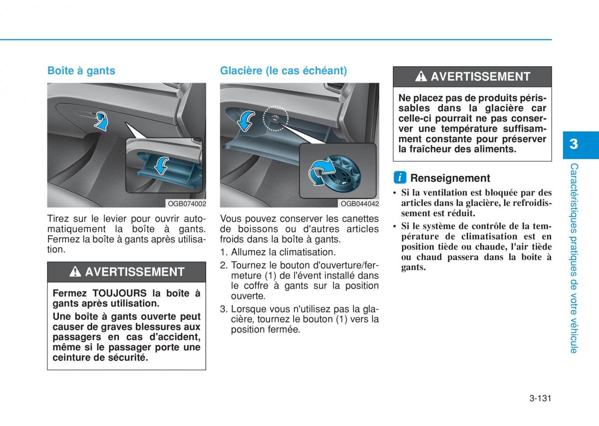 Boîte à gants Glacière (le cas échéant) AVERTISSEMENT