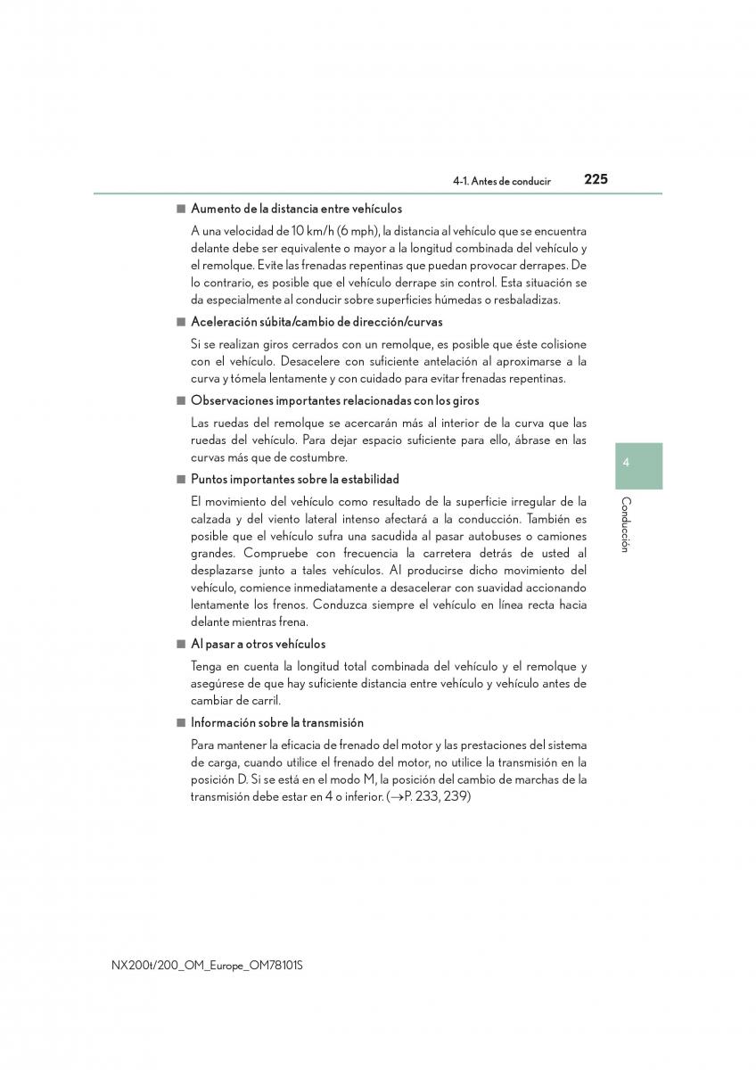 4-1. Antes de conducir225