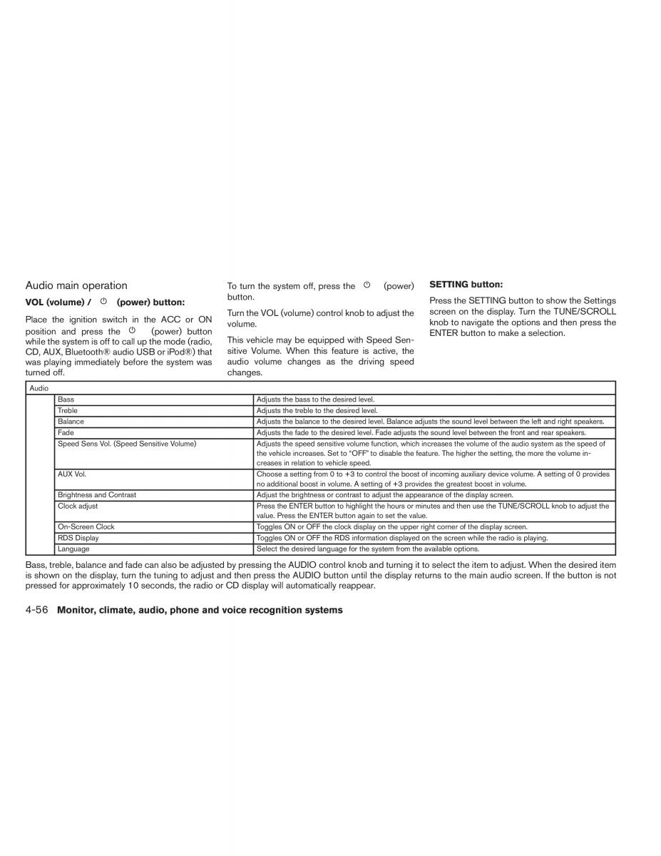 4-56 Monitor, climate, audio, phone and voice recognition systems