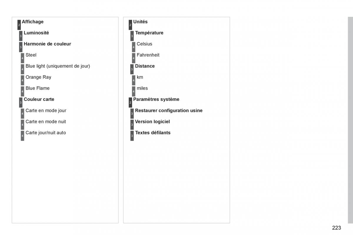 3 Couleur carte 2 Paramètres s ystème