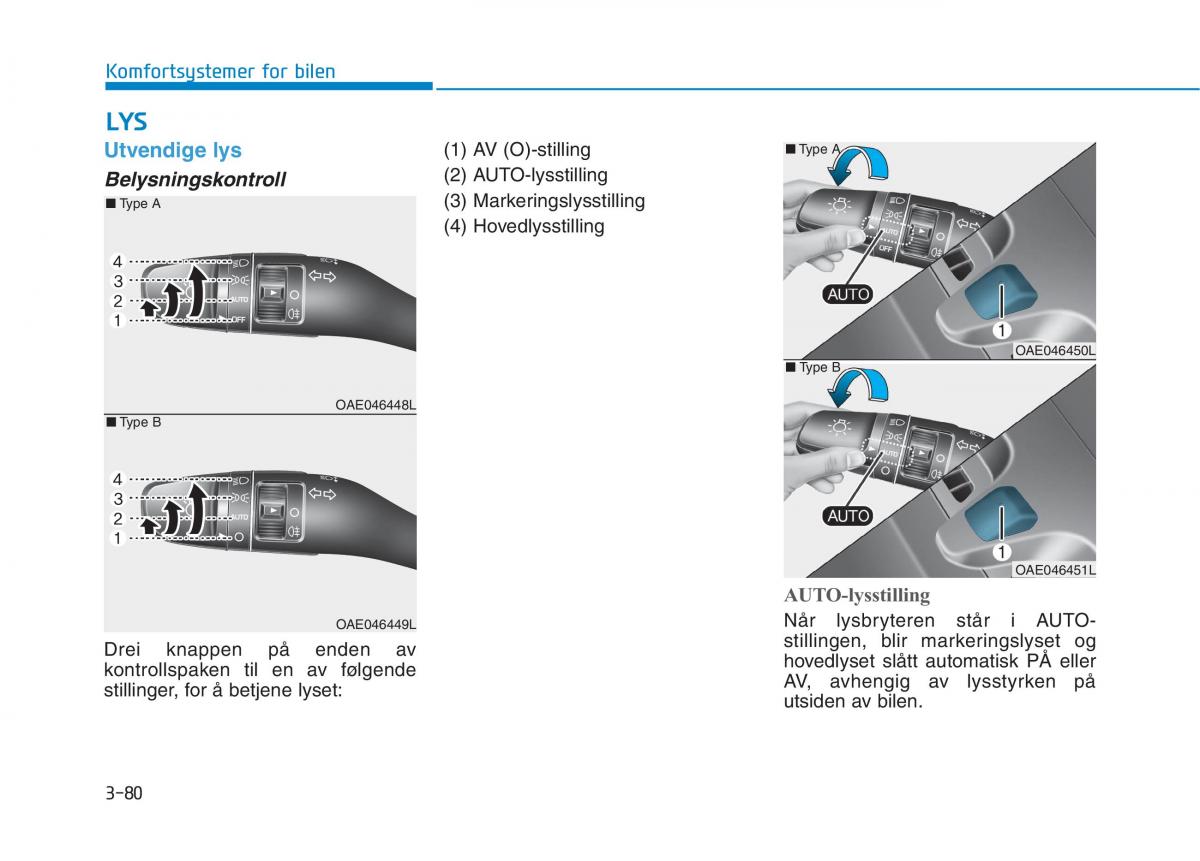OAE046449L Når lysbryteren står i AUTO-