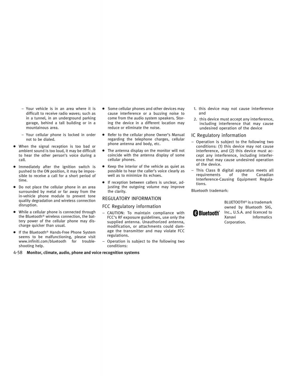 www.infiniti.com/bluetoothfortrouble-– Operation is subject to the following two