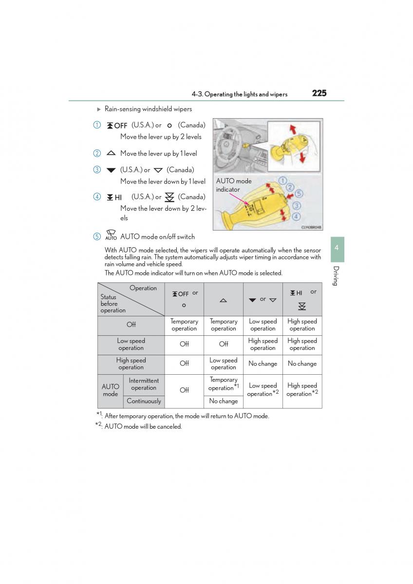With AUTO mode selected, the wiperill s woperate automatically when the sensor
