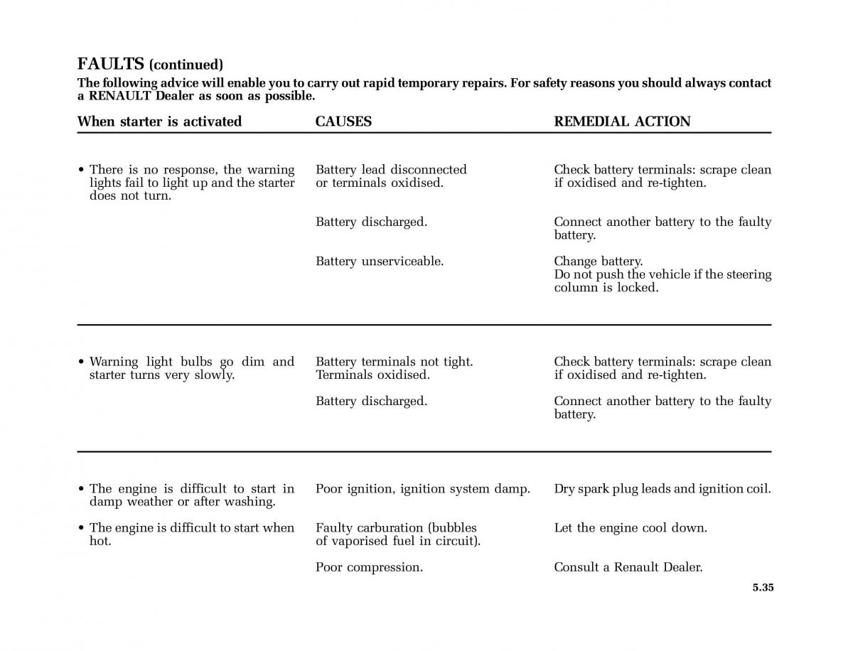• There is no response, the warningBattery lead disconnected Check battery terminals: scrape clean