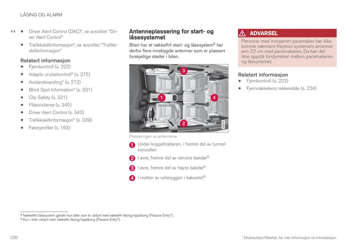 || • Driver Alert Control (DAC)*, se avsnittet "Dri-Antenneplassering for start- og ADVARSEL