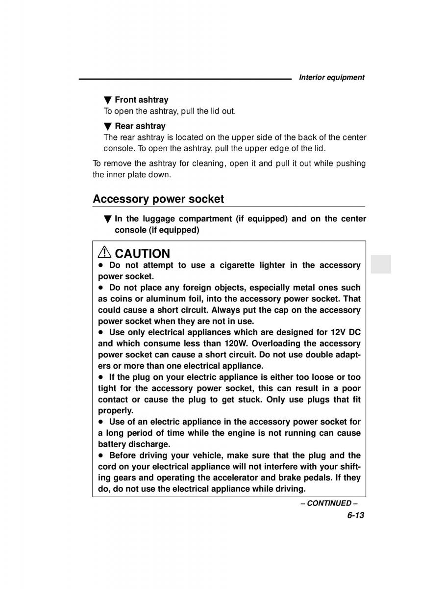from owners manual to the vehicle Subaru Outback, year of production 2000 - 2004: