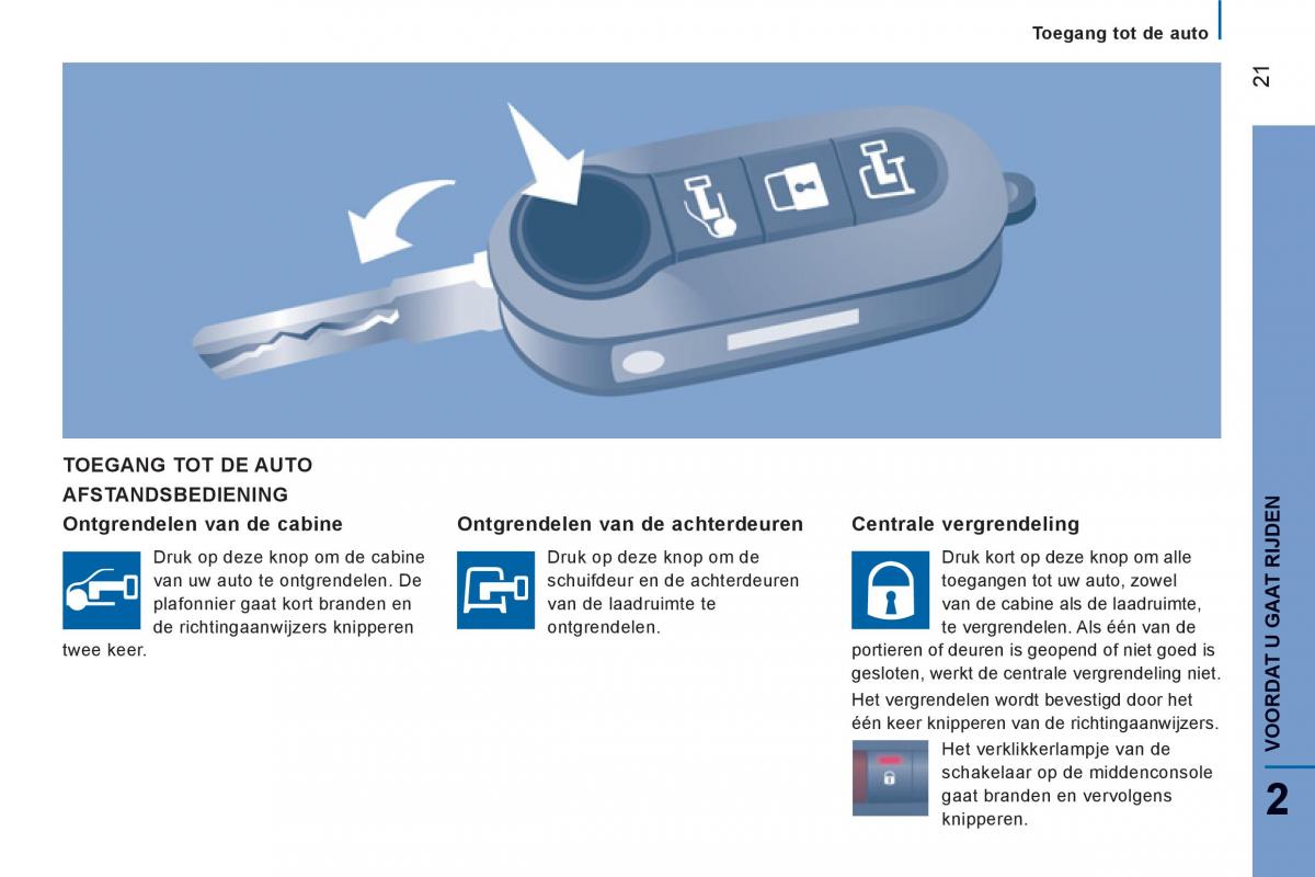 Ontgrendelen van de cabine Ont grendelen van de achterdeurenCentrale vergrendeling