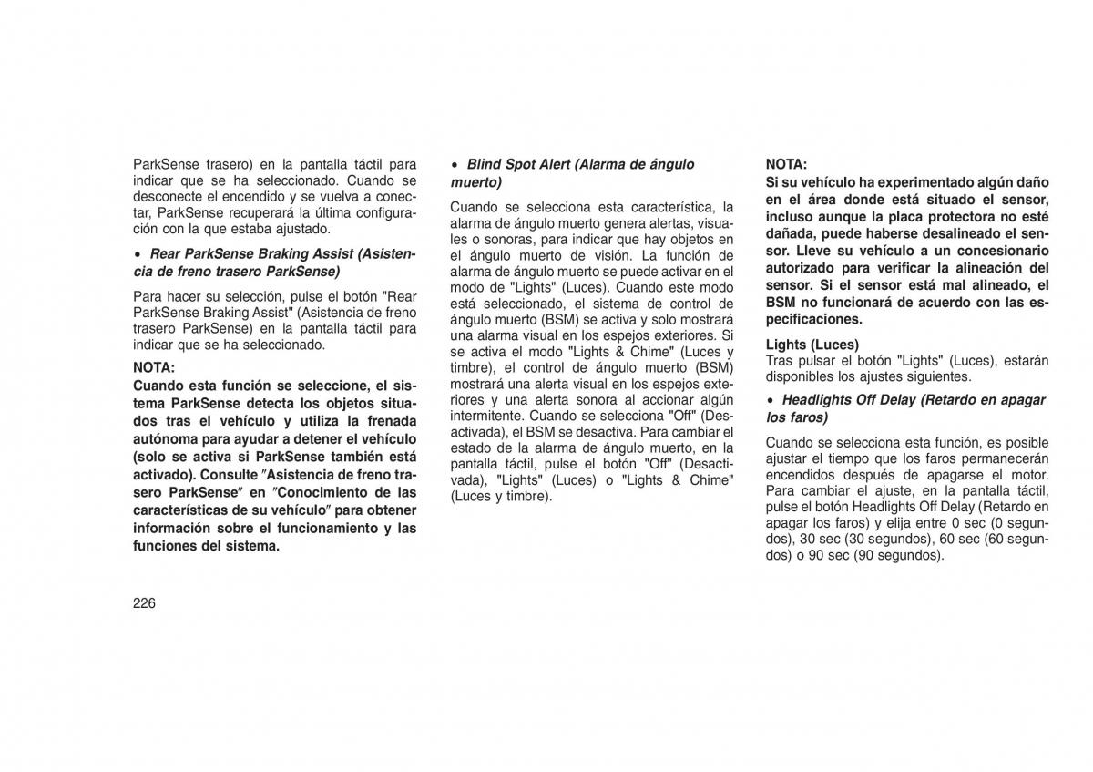 tema ParkSense detecta los objetos situa-riores y una alerta sonora al accionar algún• Headlights Off Delay (Retardo en apagar