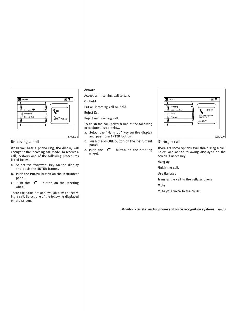 Receiving a call b. PushthePHONEbuttonontheinstrumentDuring a call