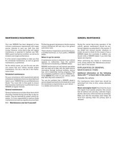 listed in your “NISSAN Service and MaintenanceservicedepartmentperformsthebestjobtomeetThe maintenance items listed here should be