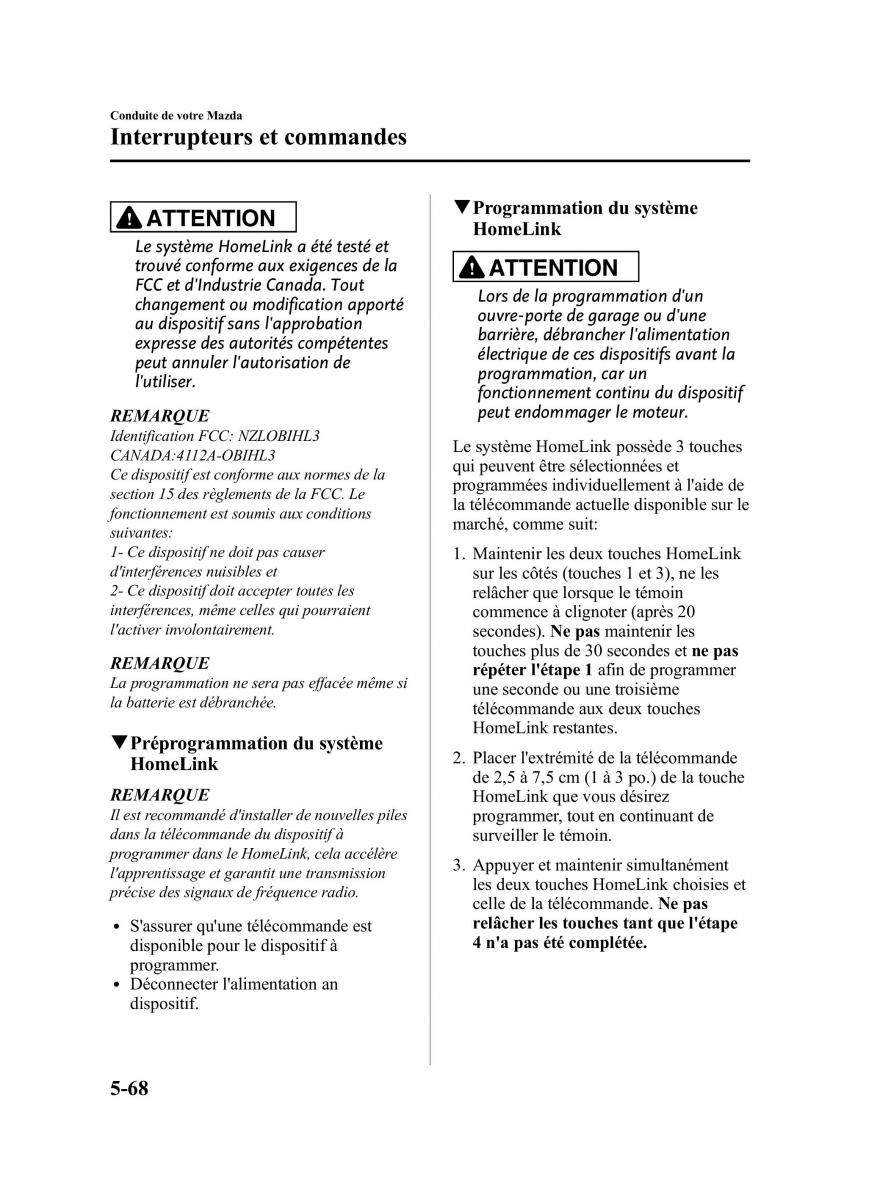 1- Ce dispositif ne doit pas causer 1. Maintenir les deux touches HomeLink