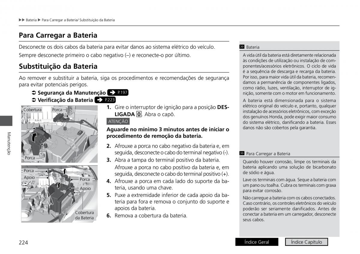 Sempre desconecte primeiro o cabo negativo (–) e reconecte-o por último. A vida útil da bateria está diretamente relacionada