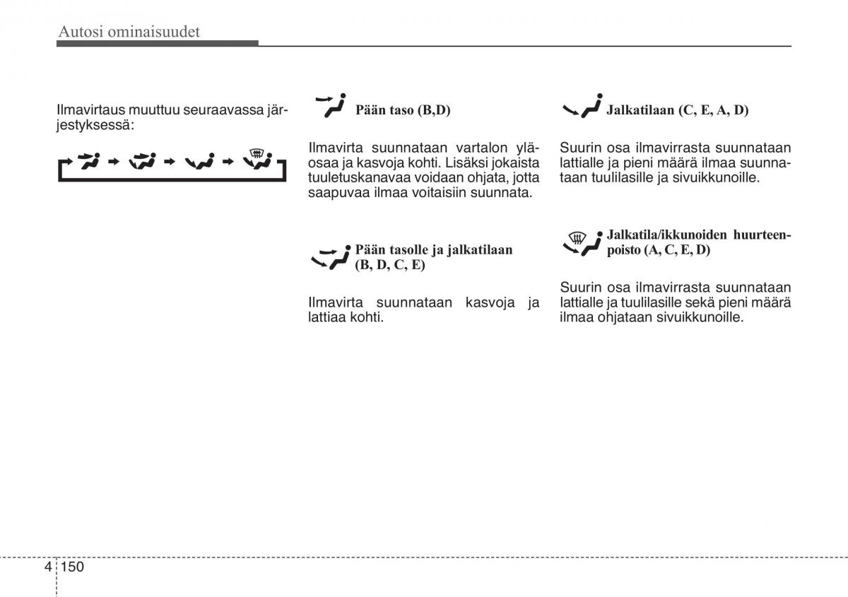Ilmavirtaus muuttuu seuraavassa jär-Pään taso (B,D)Jalkatilaan (C, E, A, D)