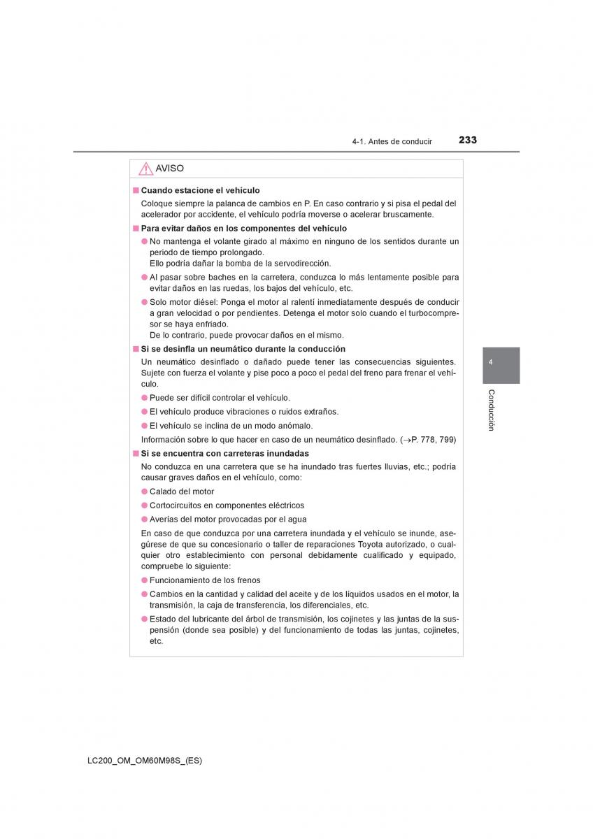 owners manual Toyota Land Cruiser - year of production: 2007 - Toyota Land Cruiser J200 manual del propietario ES