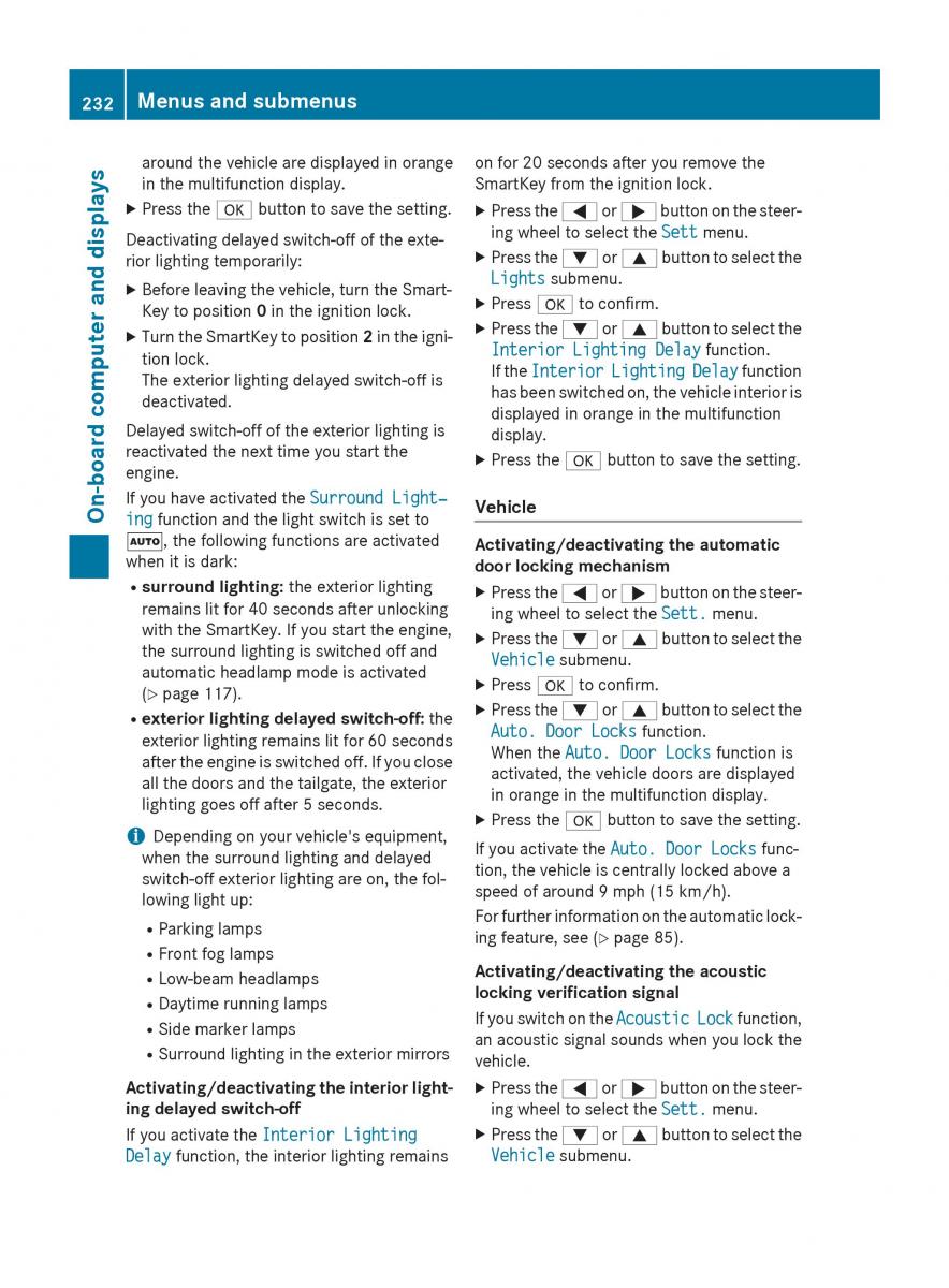 DelDelayay function, the interior lighting remainsVehVehicliclee submenu.