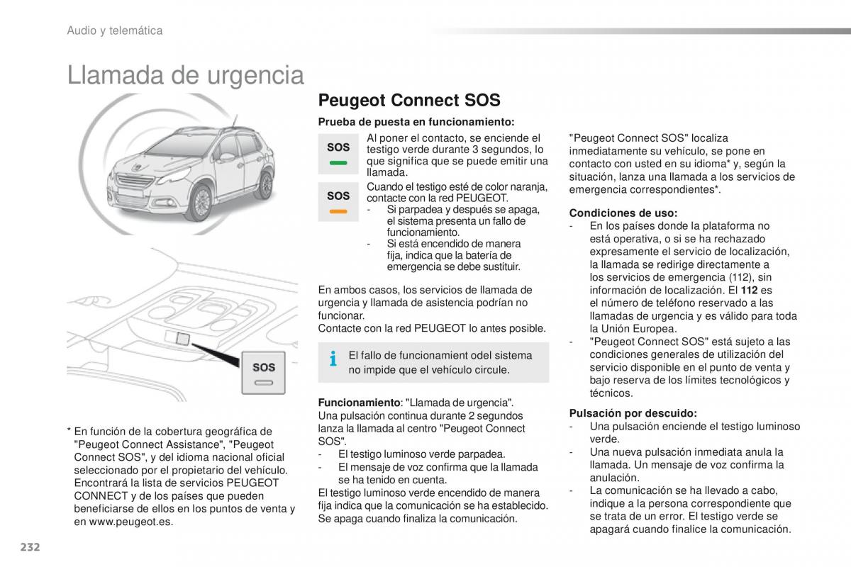"Peugeot Connect Assistance", "Peugeot SOS". verde.
