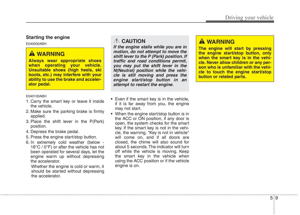 WARNING shift lever to the P (Park) position. Ifthe engine start/stop button, only