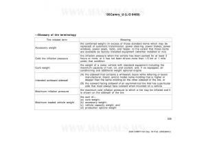 from owners manual to the vehicle Toyota Camry, year of production 2001 - 2006: