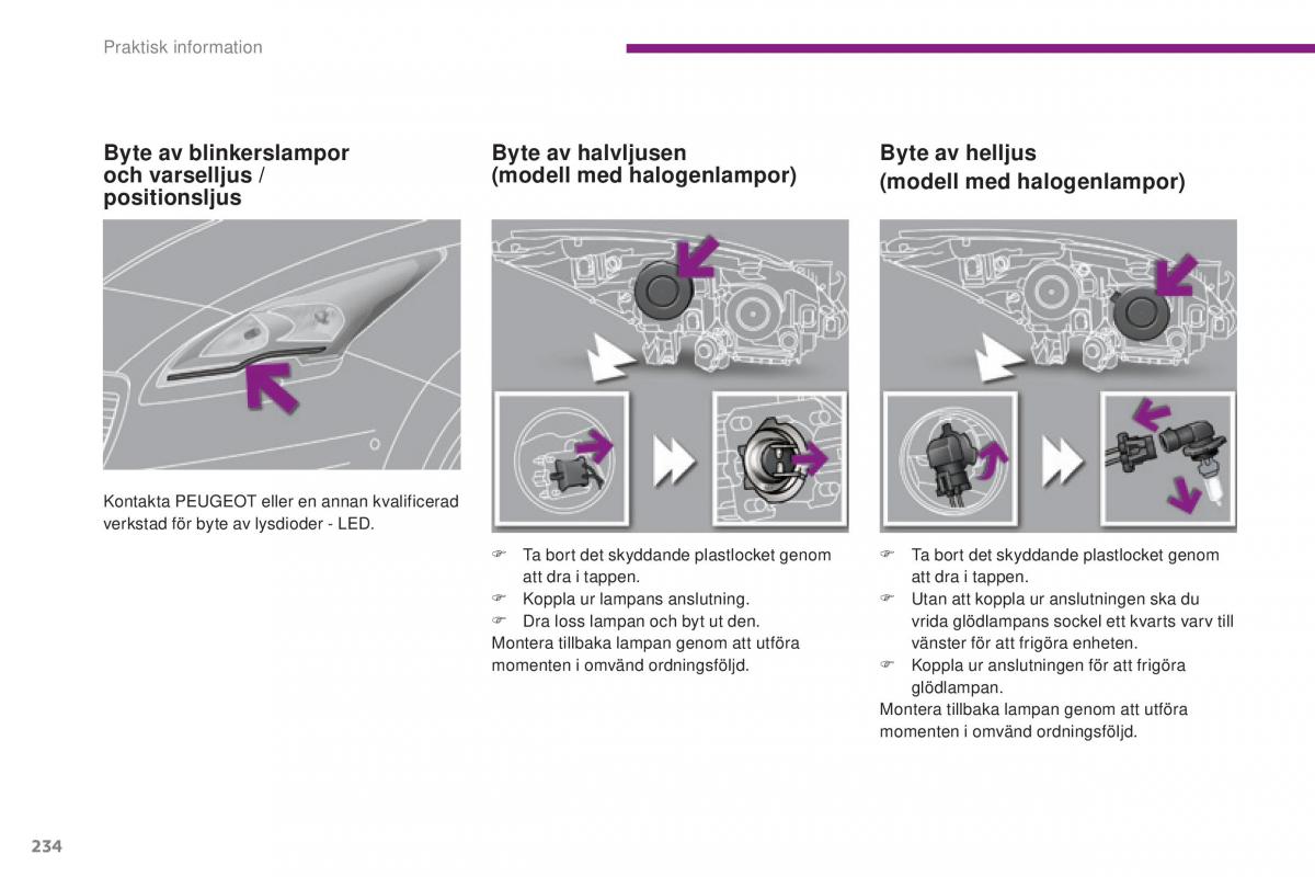 Byte av blinkerslampor Byte av halvljusen Byte av helljus