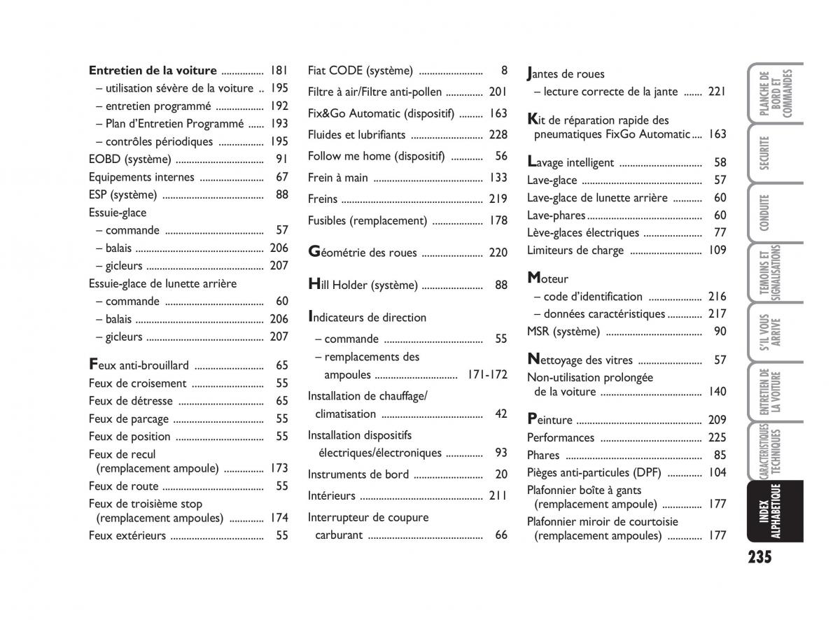 Feux extérieurs .55carburant .66(remplacement ampoules) .177ALPHABETIQUE
