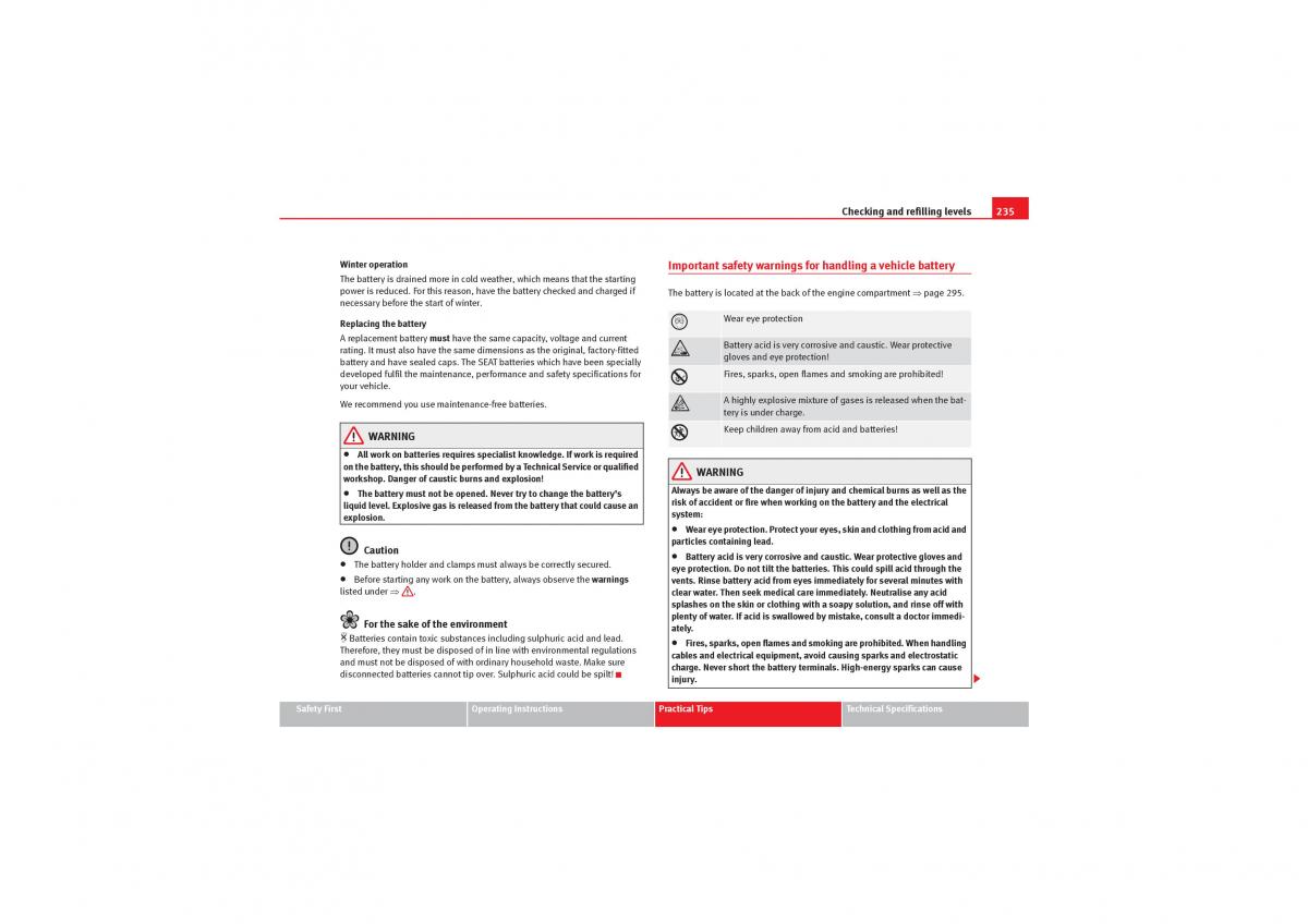 power is reduced. For this reason, have the battery checked and charged if The battery is located at the back of the engine compartment ⇒page 295.