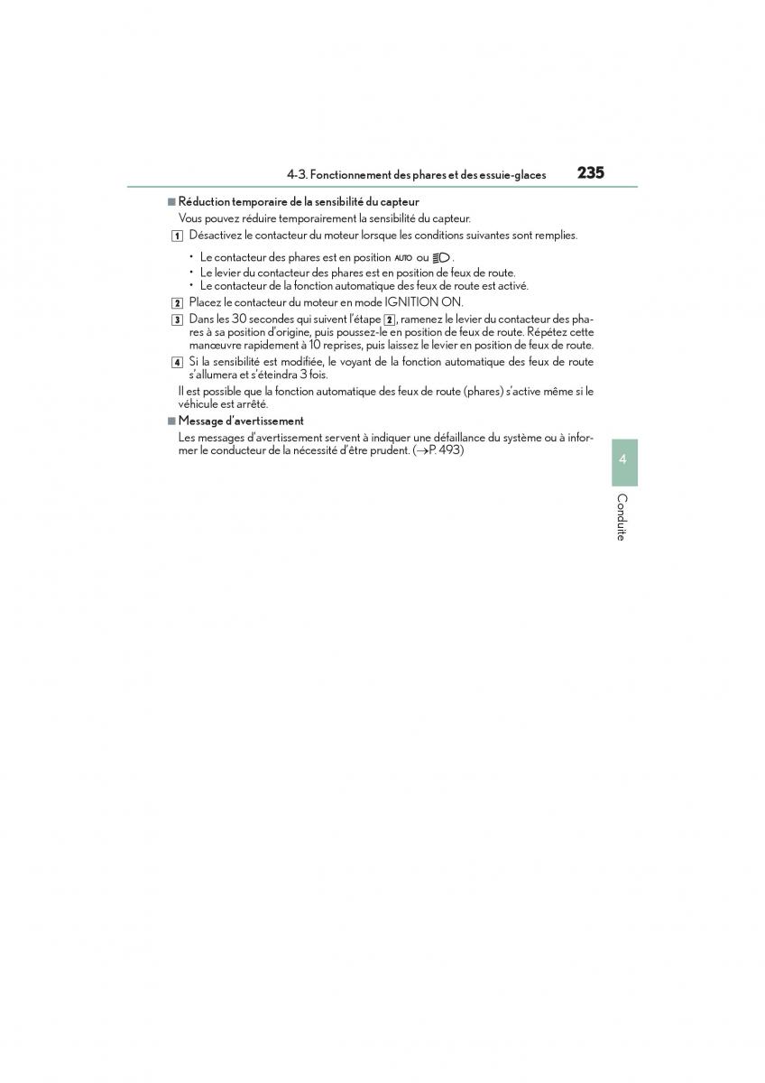 4-3. Fonctionnement des phares et des essuie-glaces235