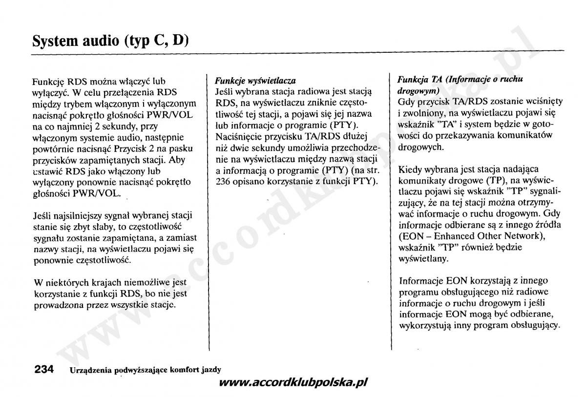 owners manual Honda Accord - year of production: 2002, 2003, 2004, 2005, 2006, 2007, 2008 - Honda Accord VII 7 instrukcja obslugi PL