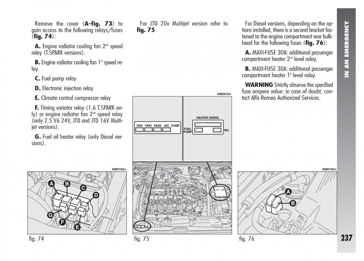 Remove the cover (A-fig. 73) to For JTD 20v Multijet version refer toFor Diesel versions, depending on the op-